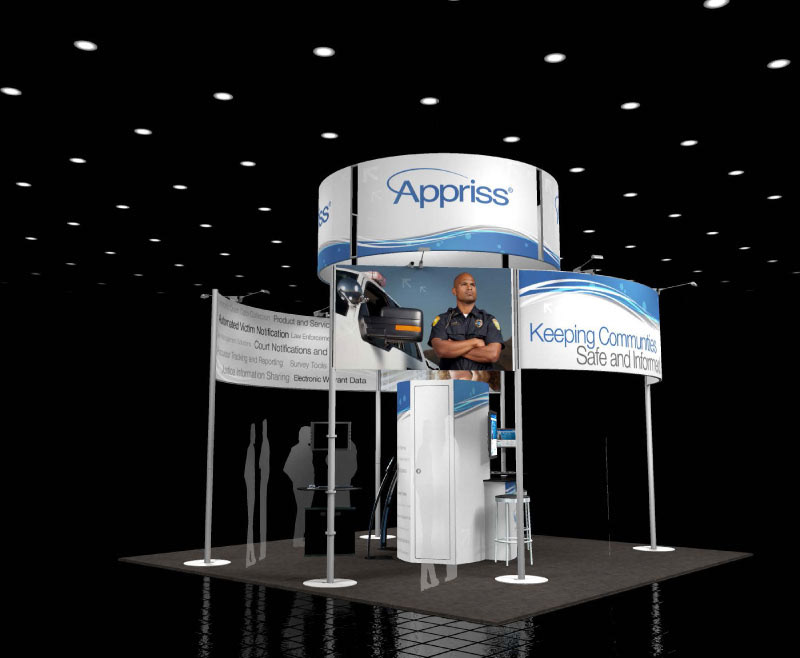 The Appriss trade show booth. Structure design by Skyline Displays. I created the graphics for all panels.