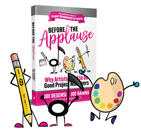 When Joe DeSensi, the co-author of Before the Applause - Why Artists Neet to be Good Project Managers, approached me about doing some illustration work for his latest book. DeSensi told me that he wanted something fun and colorful, and. he really liked the idea of some hand-drawn cartoons. I agreed, and completed about seven illustrations, featuring three simple characters representing different types of artistic work. After a few meetings, it became apparent that these characters were going to play a much larger role in the book.