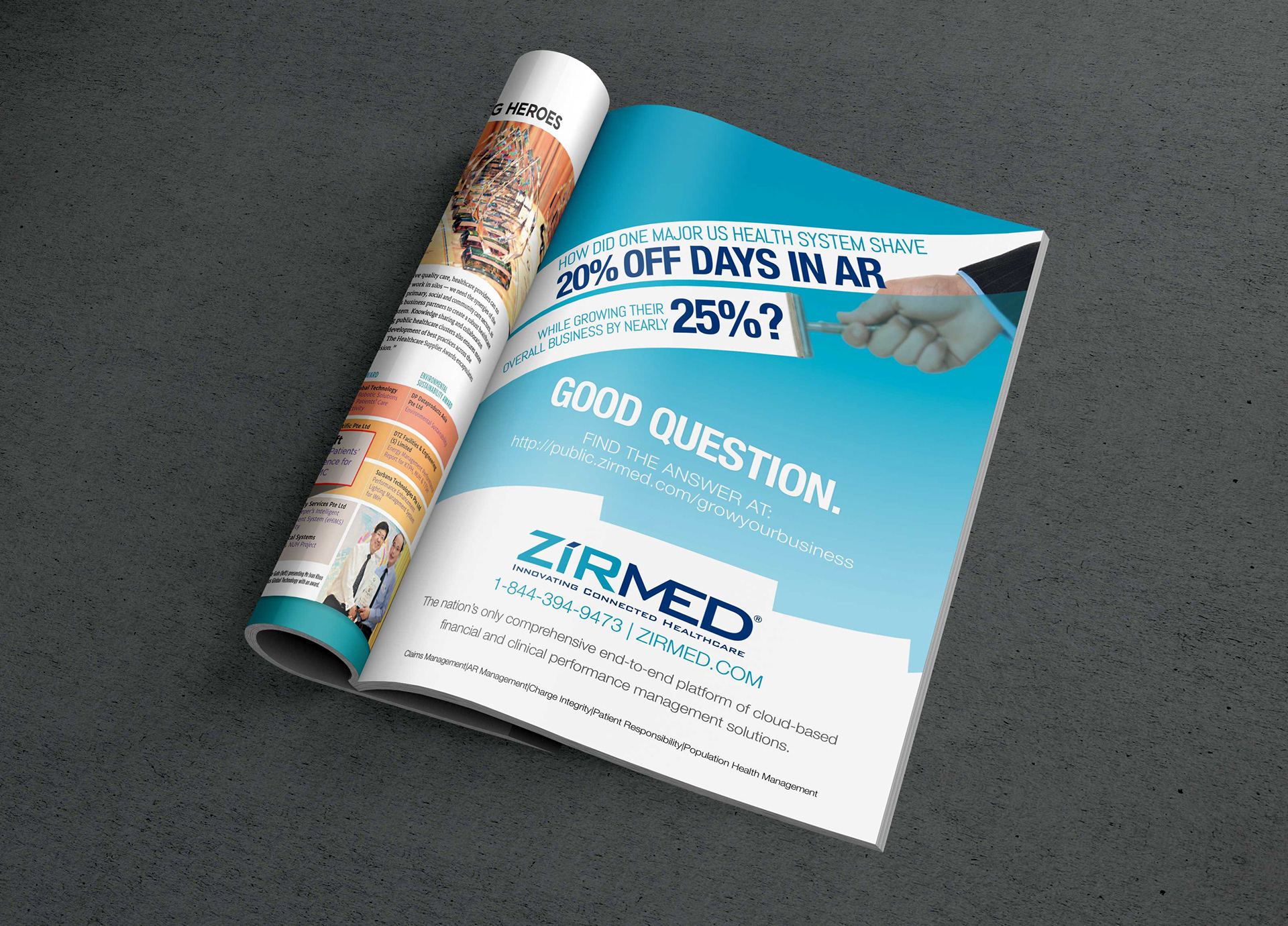A full page ad that I help conceptualize and execute for ZirMed, located in Louisville, Kentucky.