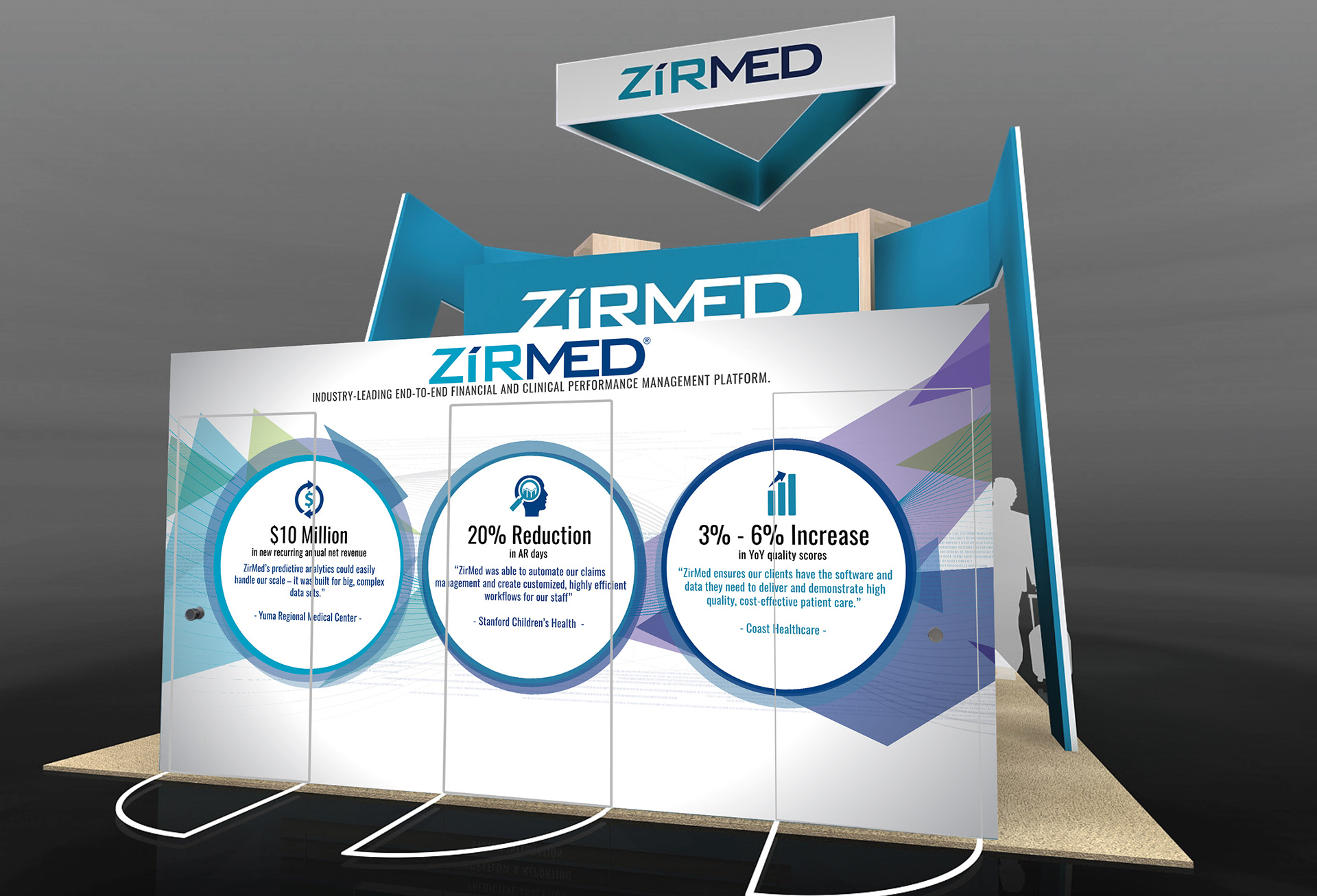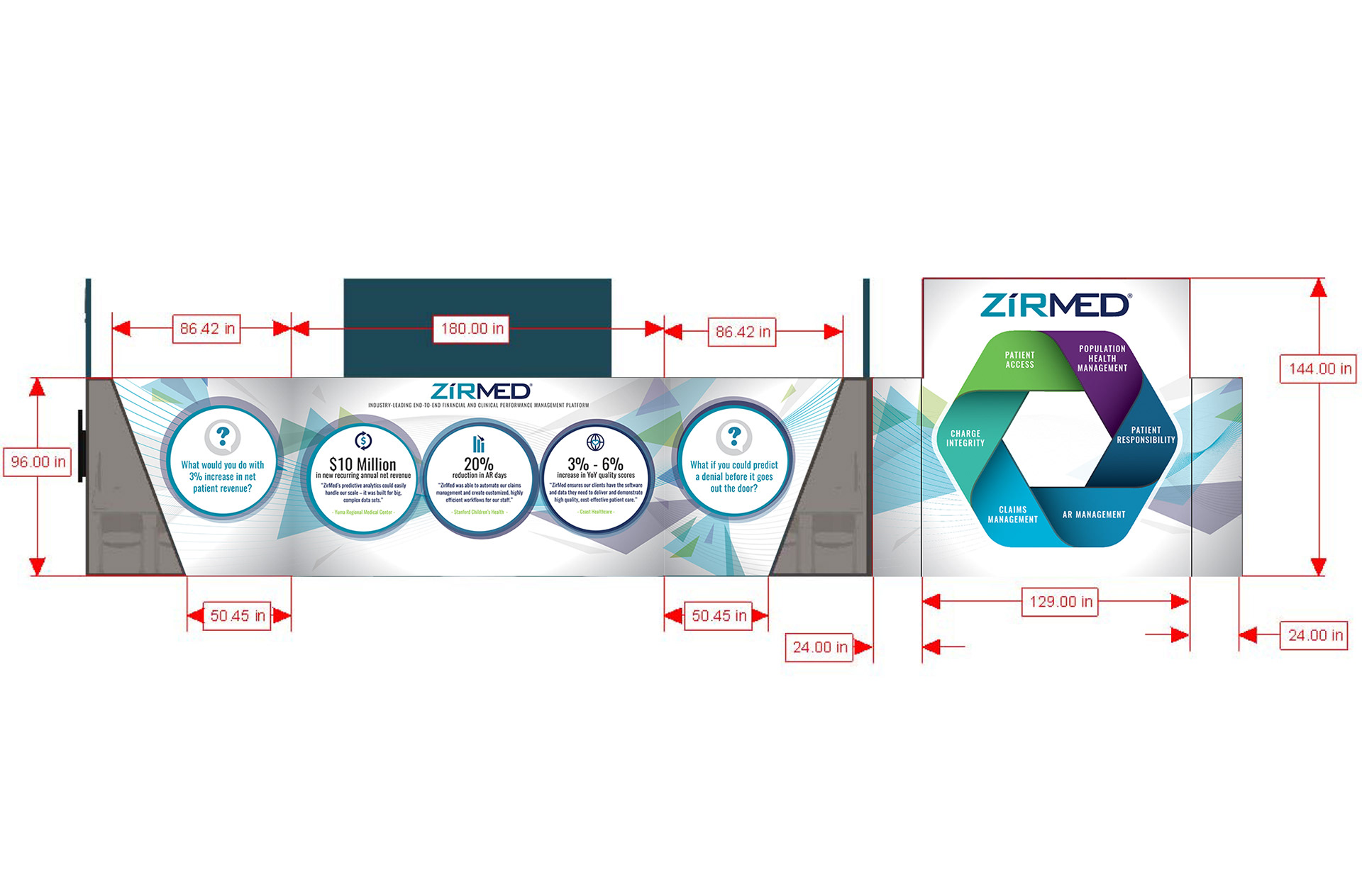 I was asked to reskin an existing large tradeshow booth for Zirmed. they wanted something more colorful and visually engaging. I completed the designs in Adobe Illustrator, and are 100% vector.